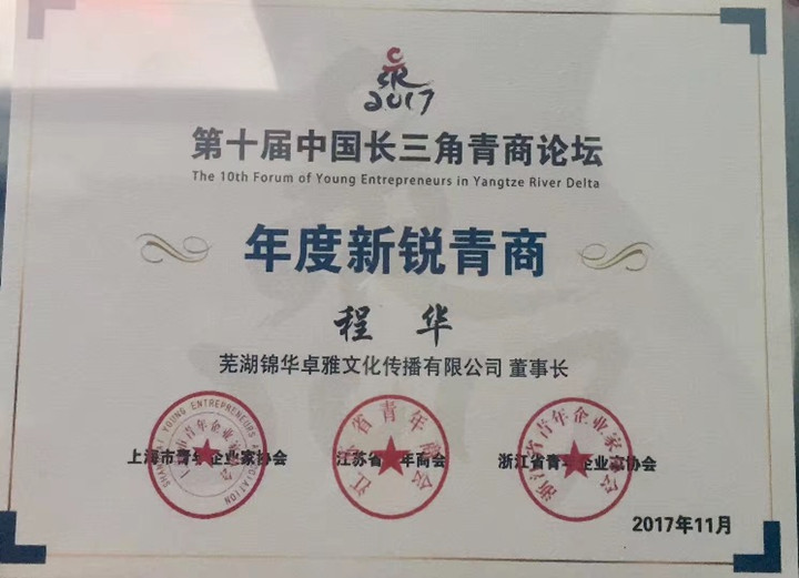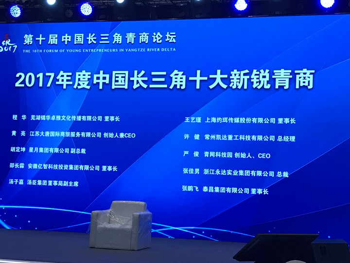 董事长程华荣获“2017年度中国长三角新锐青商”